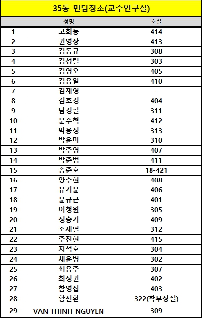 [학부] 2025-2학기 학생면담 시간표 및 면담 장소 안내