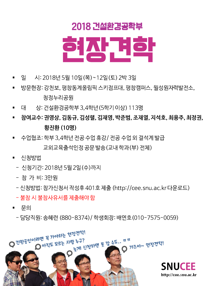 건설환경공학부에서는 매년 3,4학년 학부생(5학기 이상)을 대상으로 현장견학을 실시합니다.