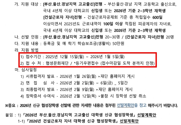 2026년 부산∙울산∙경남지역 고교출신 대학생 신규 협성장학생 선발계획안.pdf (151.4K)