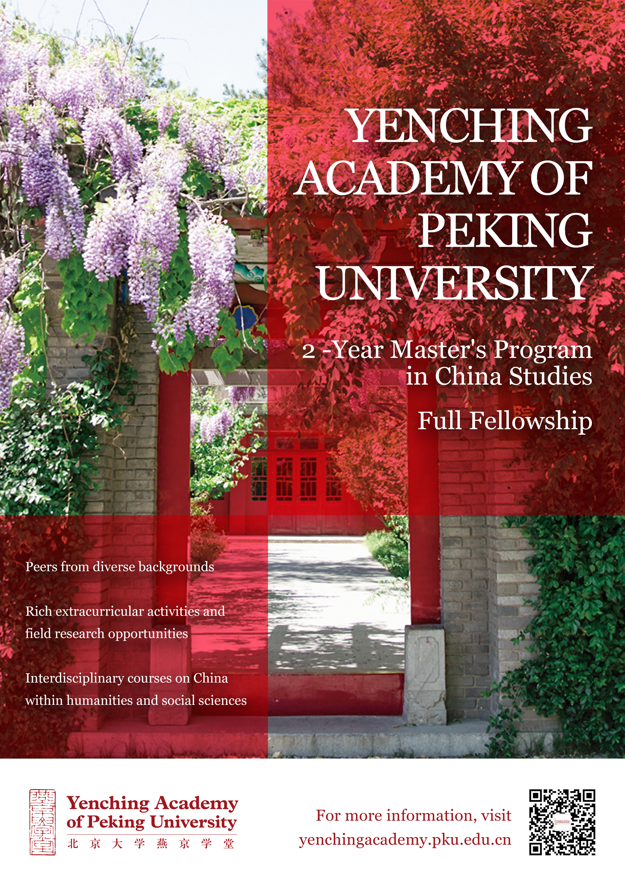 2026 중국 북경대 Yenching Academy 장학생 선발 안내 가. 개요: 북경대 소속 중국학 교육기관인 Yenching Academy에서 중국학 협동과정(석사과정)에 진학하고자 하는 국제장학생 모집 나. 지원자격 1) 학사과정 졸업(예정)자 (졸업예정자의 경우 2026. 8. 31.까지 학사학위 취득자) 2) 학업성적 우수자 3) 중국학 협동과정에 관심 있는 자 4) 대외활동, 봉사, 사회적책임, 리더십 역량을 보유한 자 5) 영어 능통자 다. 지원내용: 전액 장학금 지원(등록금, 생활비, 왕복 항공료 등) 라. 지원기간: 2025. 9. 10. ~ 2025. 12. 1. (오전 9시, 북경 시간) 마. 지원방법: 접수링크(https://apply.yca.pku.edu.cn/)통해 지원 ※ 자세한 사항은 홈페이지(https://yenchingacademy.pku.edu.cn/index.htm) 참고 바랍니다.