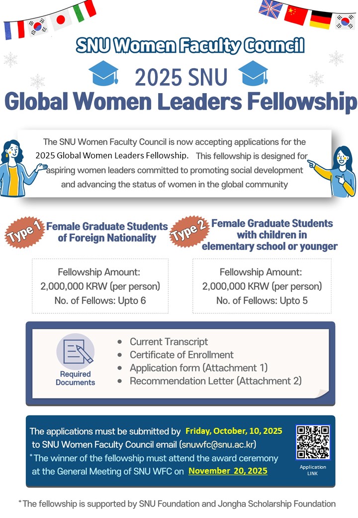 *For any further inquiries, please contact the SNU Women Faculty Council via email at snuwfc@snu.ac.kr.