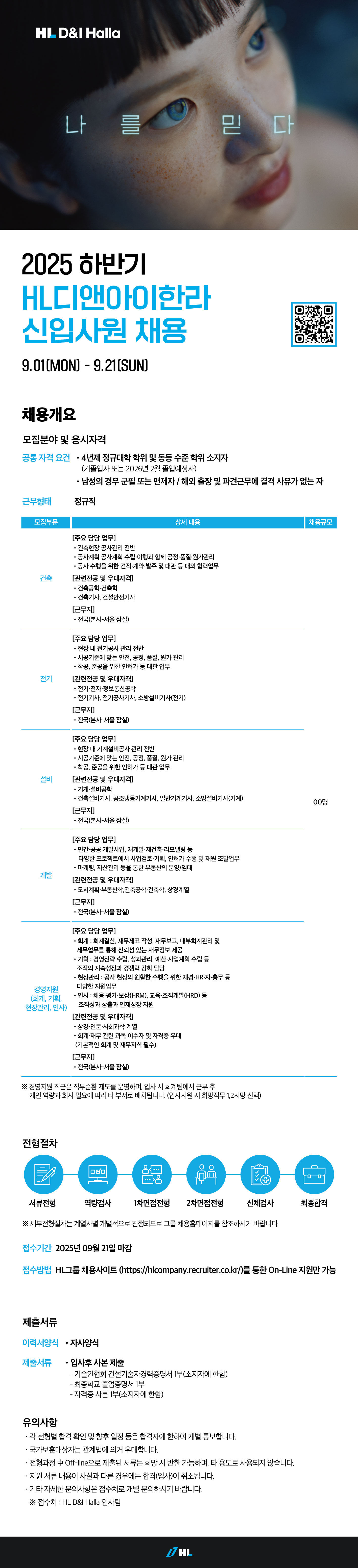 (HL그룹 채용 홈페이지 내 HL디앤아이한라 신입사원 채용 공고)
