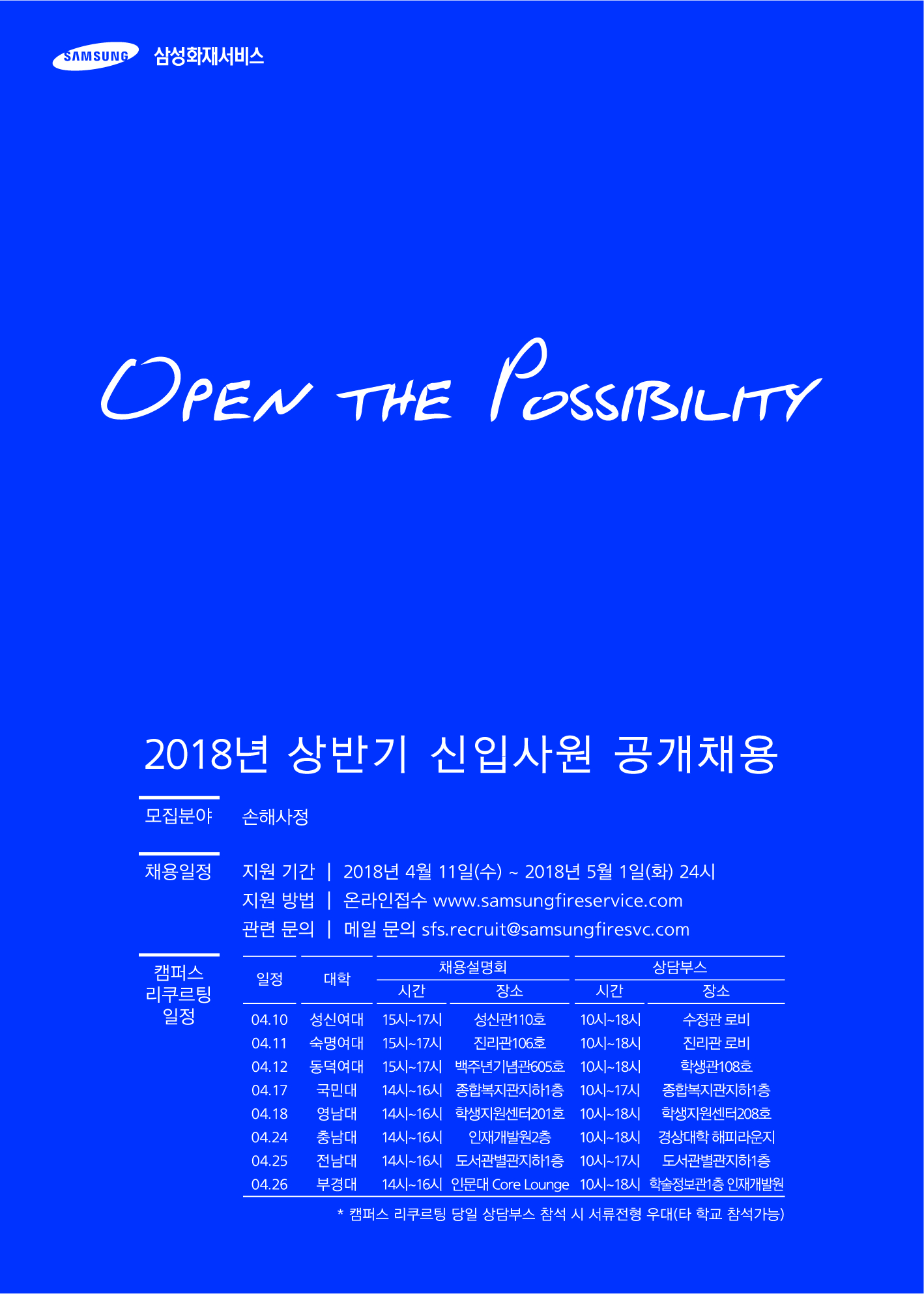 삼성화재서비스 2018년 상반기 신입사원 공개채용 안내
