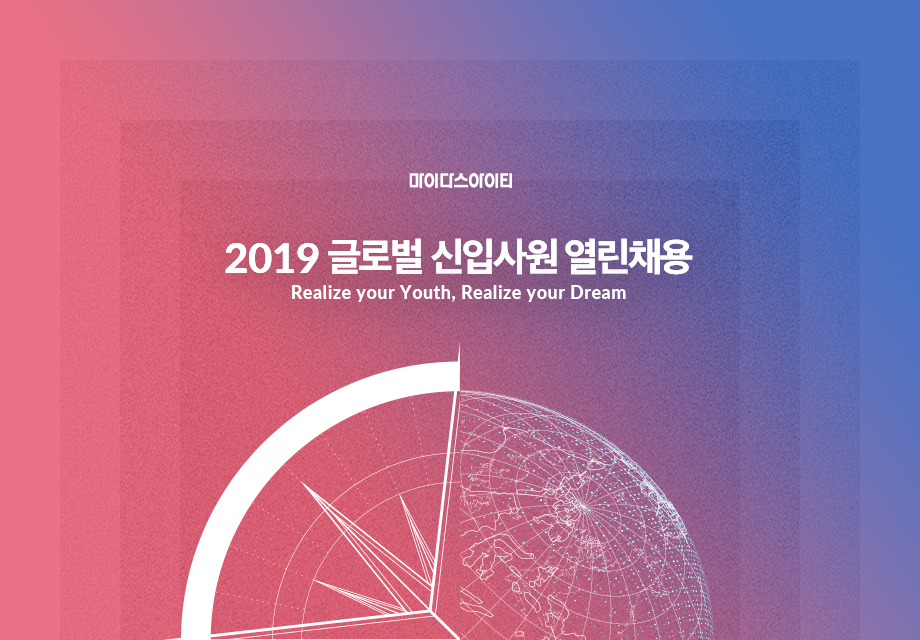 구분 내용 공고명 2019 글로벌 신입사원 열린채용 공고접수기간 5/27(월) ~6/21(금) 공고 URL https://midas.recruiter.co.kr/app/jobnotice/view?systemKindCode=MRS2&jobnoticeSn=10279