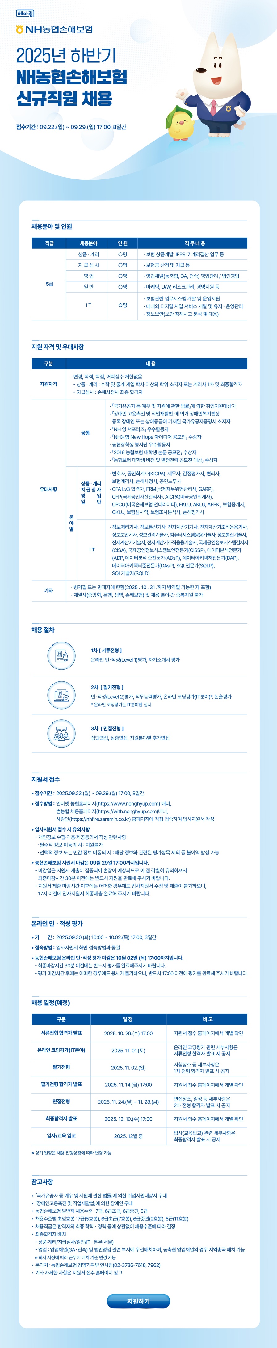[NH농협손해보험] 2025 하반기 신규직원 채용 (~9/29)