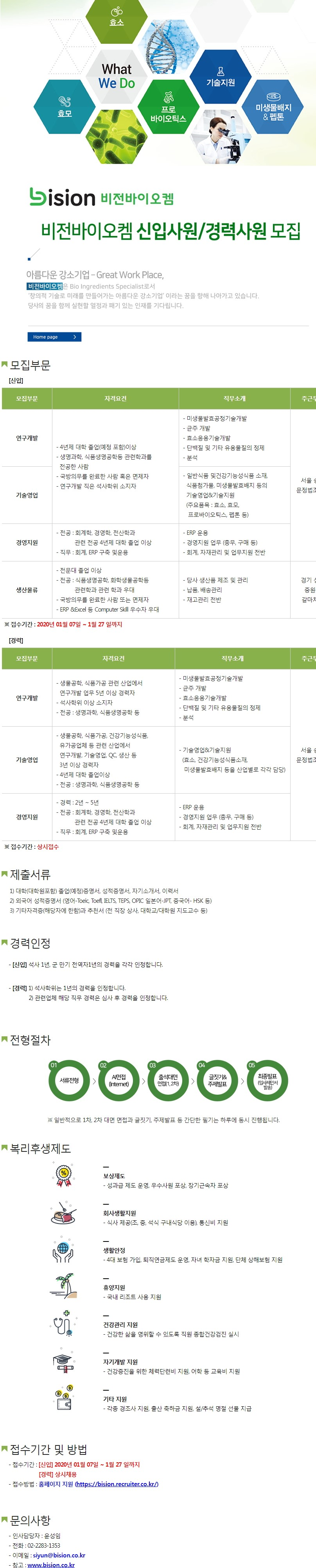 [비전바이오켐] 2020년 비전바이오켐 신입 및 경력사원 모집