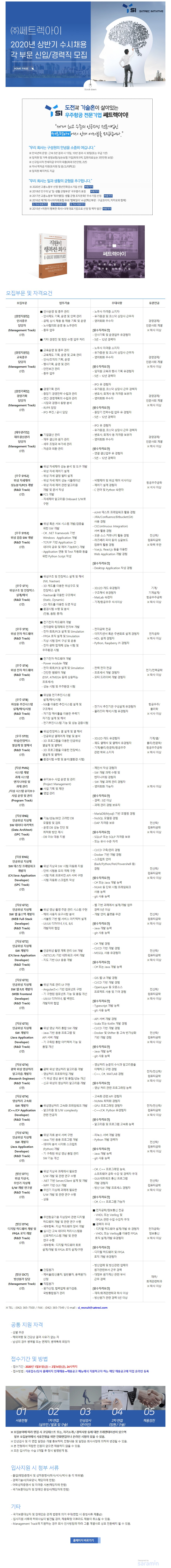 공고접수기간 2020.07.01 ~ 2020.07.10 공고 URL https://satreci.recruiter.co.kr/app/jobnotice/view?systemKindCode=MRS2&jobnoticeSn=21122