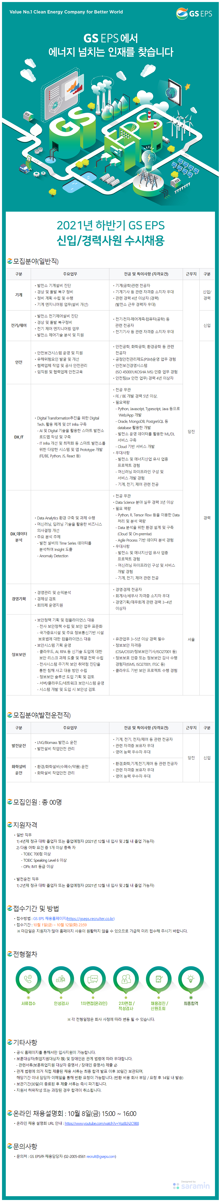 2021년 하반기 GS EPS 신입/경력사원 수시채용