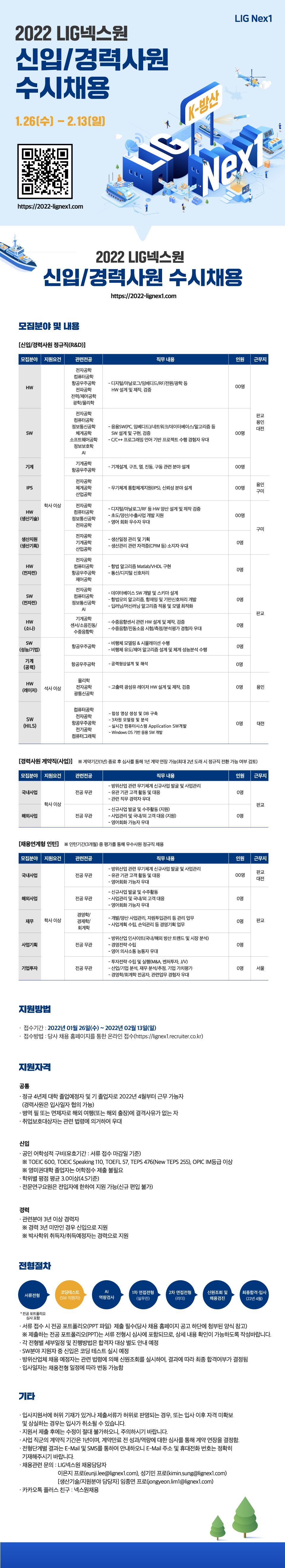 [LIG넥스원] 2022년 LIG넥스원 신입/경력사원 수시채용 (~02/13)
