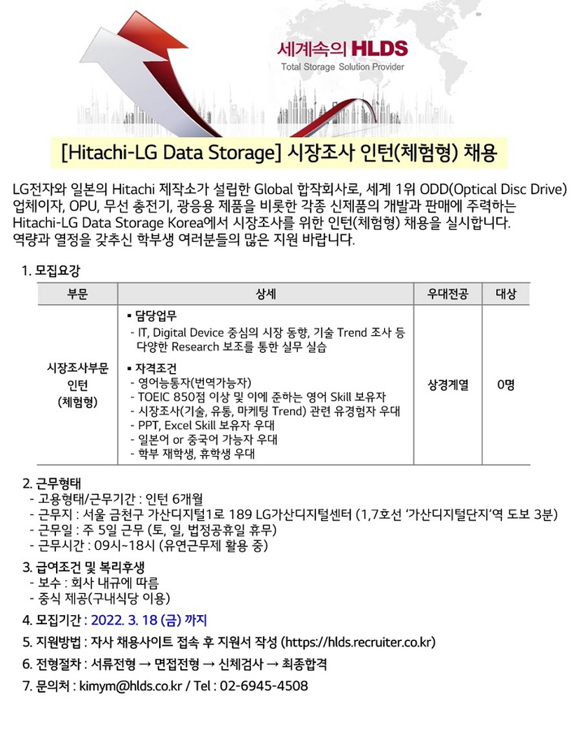 [Hitachi-LG Data Storage] 시장조사 인턴(체험형) 채용