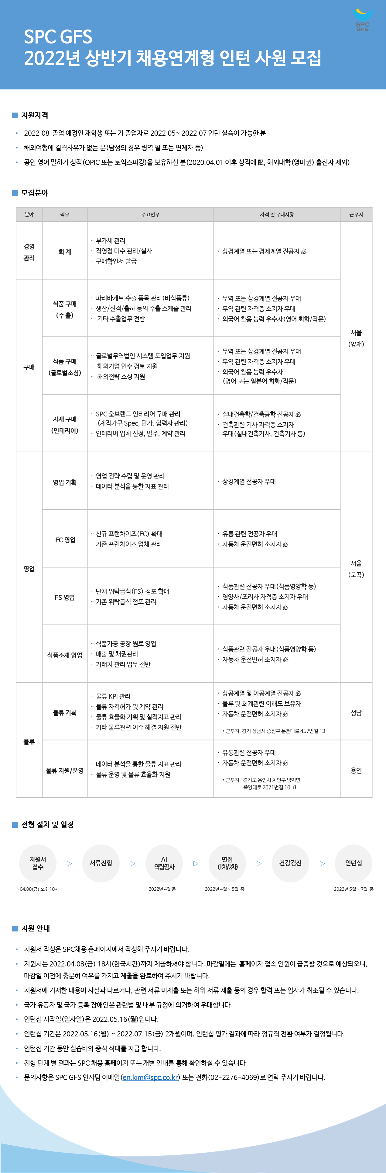[SPC GFS] 2022년 상반기 채용형 인턴사원 모집