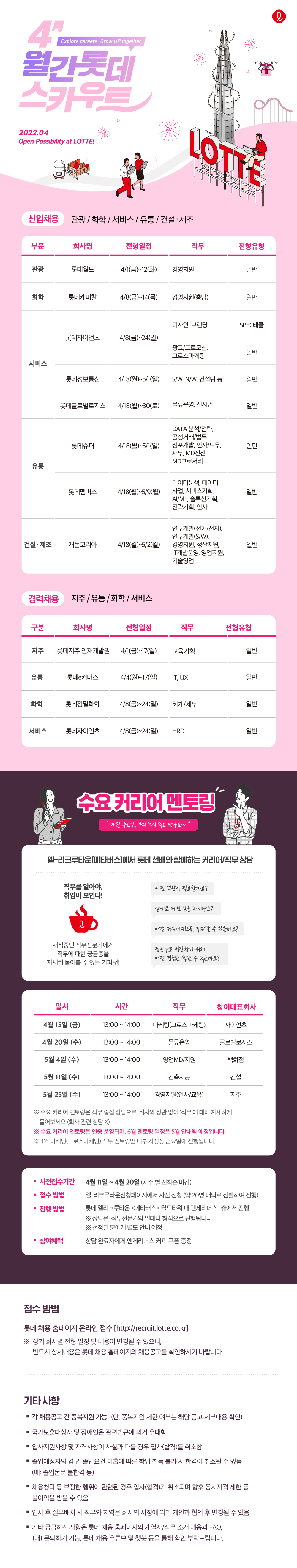[롯데그룹] 4월 롯데 채용 및 수요 커리어 멘토링 신청 안내
